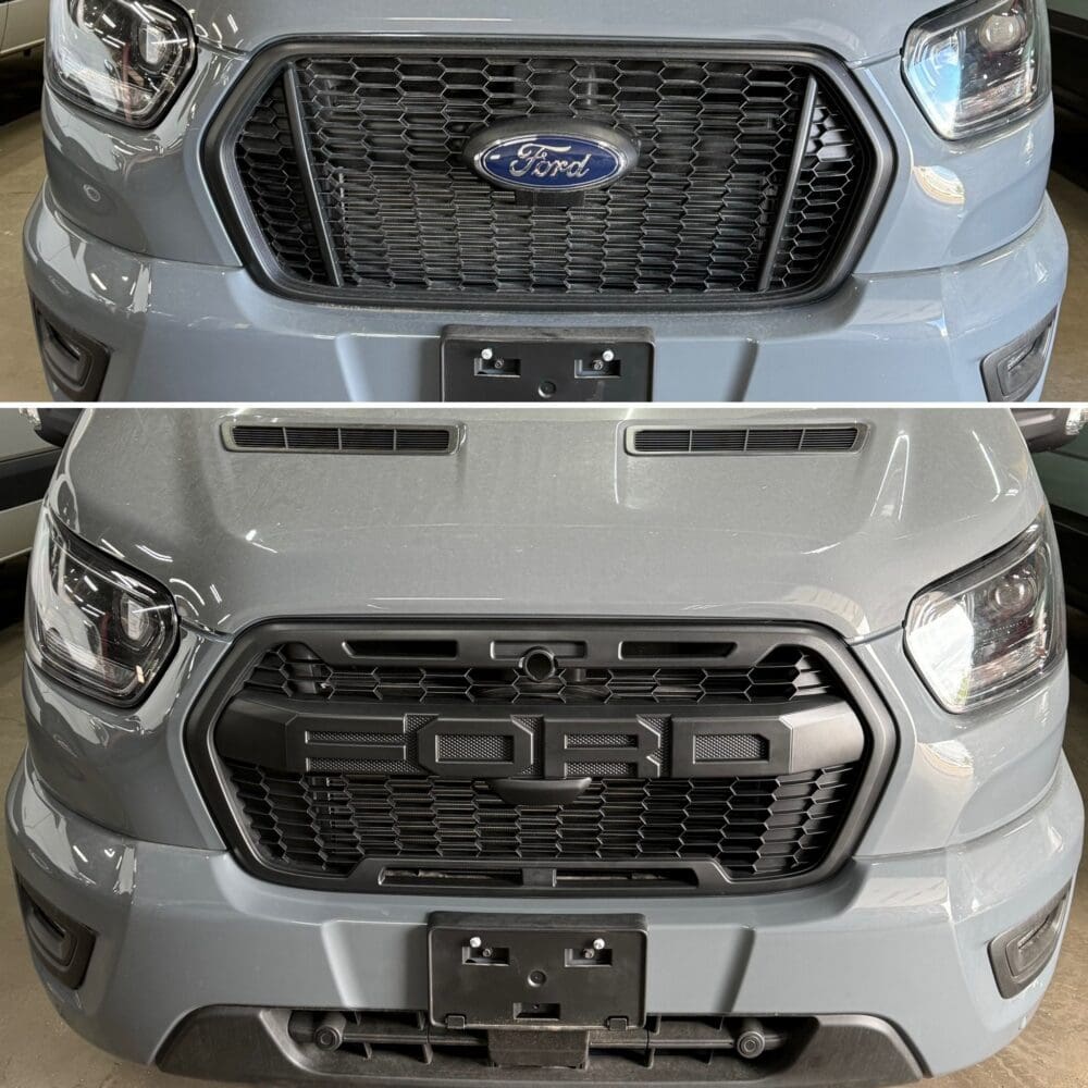 Ford Transit styling has improved, but still leaves something to be desired. The biggest change you can make is swapping to a F-150 Raptor style grille. They’re not available in the U.S., so we import OEM grilles from Europe to get the right look and fit. They don’t come cheap, but the improved look is priceless!