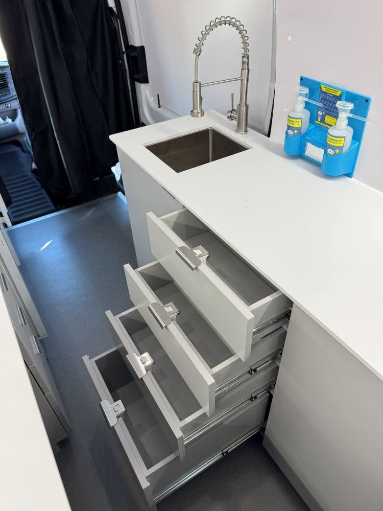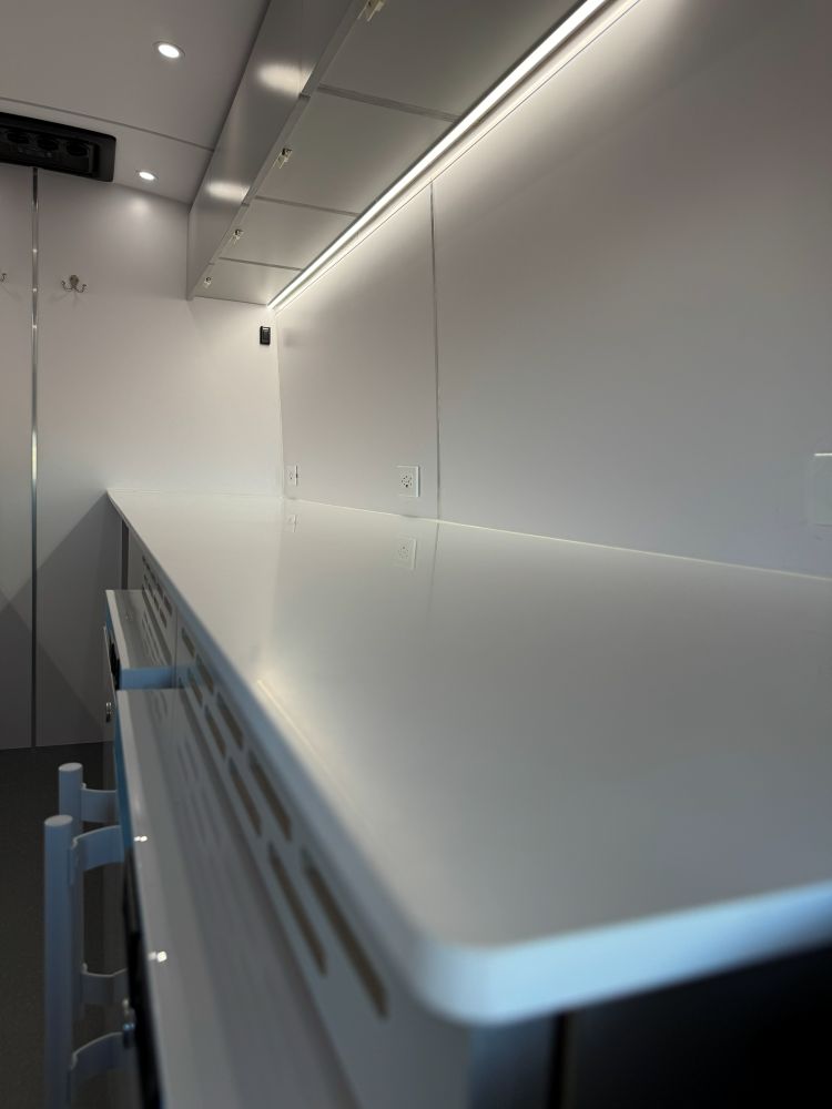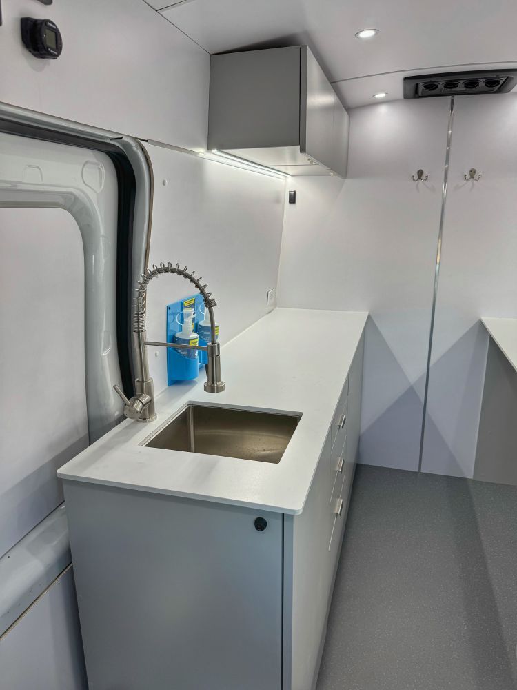 This mobile medical lab van conversion was created to enable our client’s technician to produce high-speed, accurate medical testing on-site.