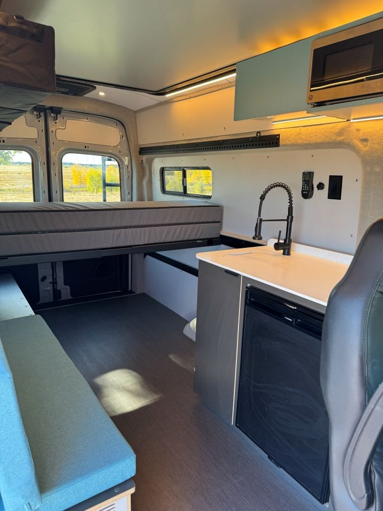 Built for family adventures, this Transit Trail comfortably seats and sleeps 4 people while leaving plenty of room for the pups, ski gear, meal prep, and any other thing you can imagine. Air conditioning keeps you cool in the summer and the heater keeps you cool in the winter.